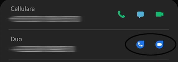 Anche in questo caso è facile utilizzare la funzione di videochiamata. Se la persona in rubrica ha configurato Google Duo, la possibilità di chiamare o videochiamare tale utente sarà disponibile toccando l’apposita icona blu.